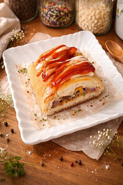 Soft baked pocket stuffed with sweet corn and gooey melted cheese